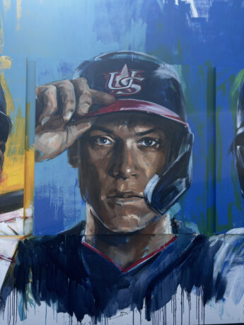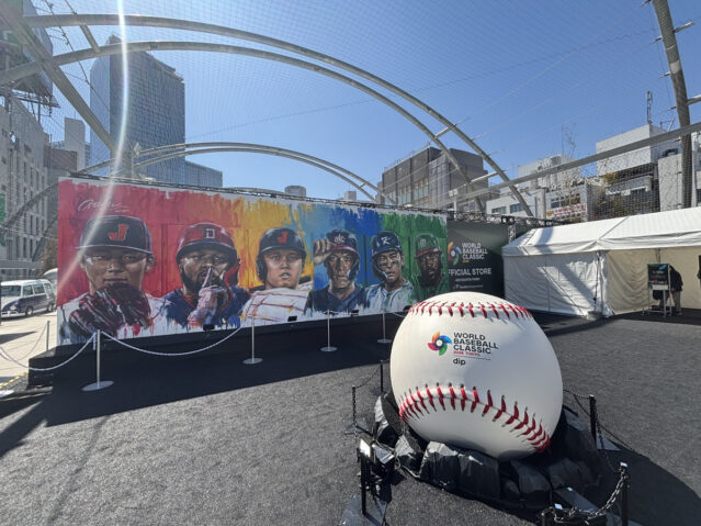 こちらの多目的運動施設に足を運ぶと、まず目に飛び込んでくるのは、、WBCの舞台で魂を燃やす選手たちの姿が描かれた特大アート!