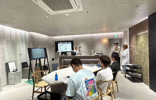 • 今回のフォローアップ講習も、東京・銀座にある特殊塗装のショールーム「LAYERED GALLERY(レイヤードギャラリー)」と、全国各地を繋ぐZOOMによるハイブリッド形式で開催しました!